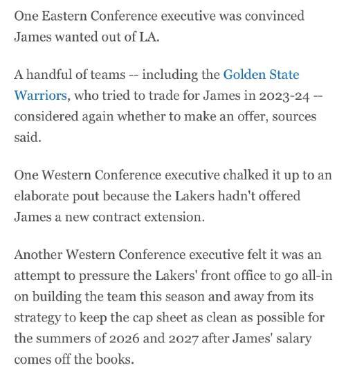 詹姆斯库里要联手?ESPN记者:金州勇士考虑向湖人发出报价
